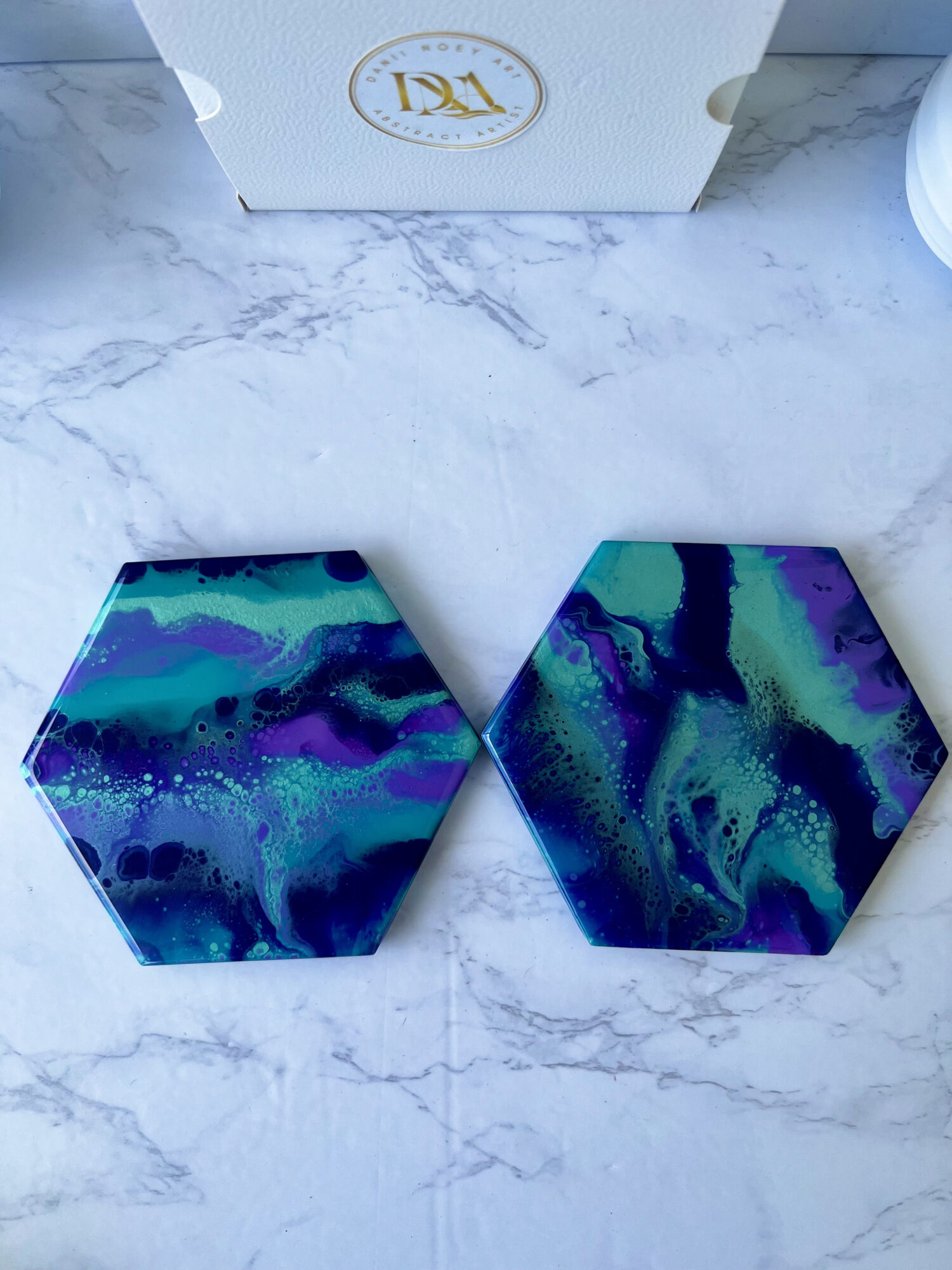 Colours may appear slightly different in photos but usually are more vibrant in person. Due to the handmade nature of these pieces and the use of resin, small imperfections may occur despite the utmost care in crafting each coaster—adding to their individual charm.
